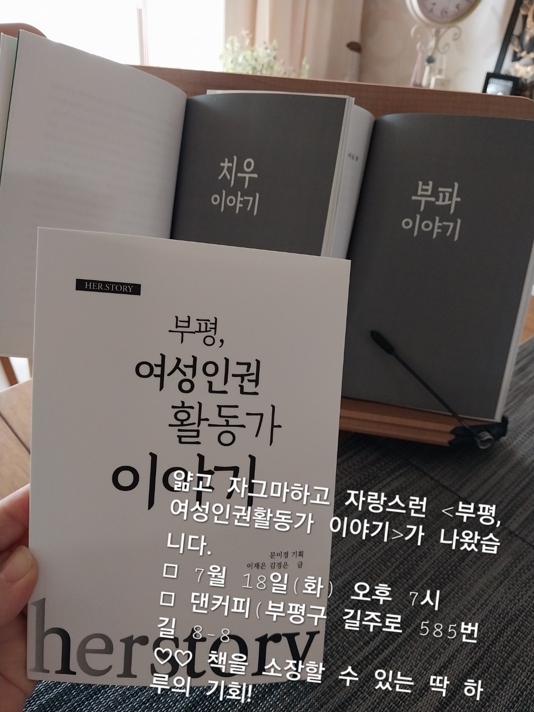 부평에는 한부모여성인권운동, 장애여성인권운동, 이주여성인권운동, 여성노동운동 단체 등이 있다고 한다. 본격적으로 작업이 시작되고 여러 분께 기획 취지를 말씀드리고 인터뷰를 부탁했으나 다섯 명 중 세 명이 거절. 딱 두 명, (사)한부모가족회 한가지 대표와 신나는여성주의도서관 랄라 관장이 수락했다. 그들의 이름은 치우와 부파.