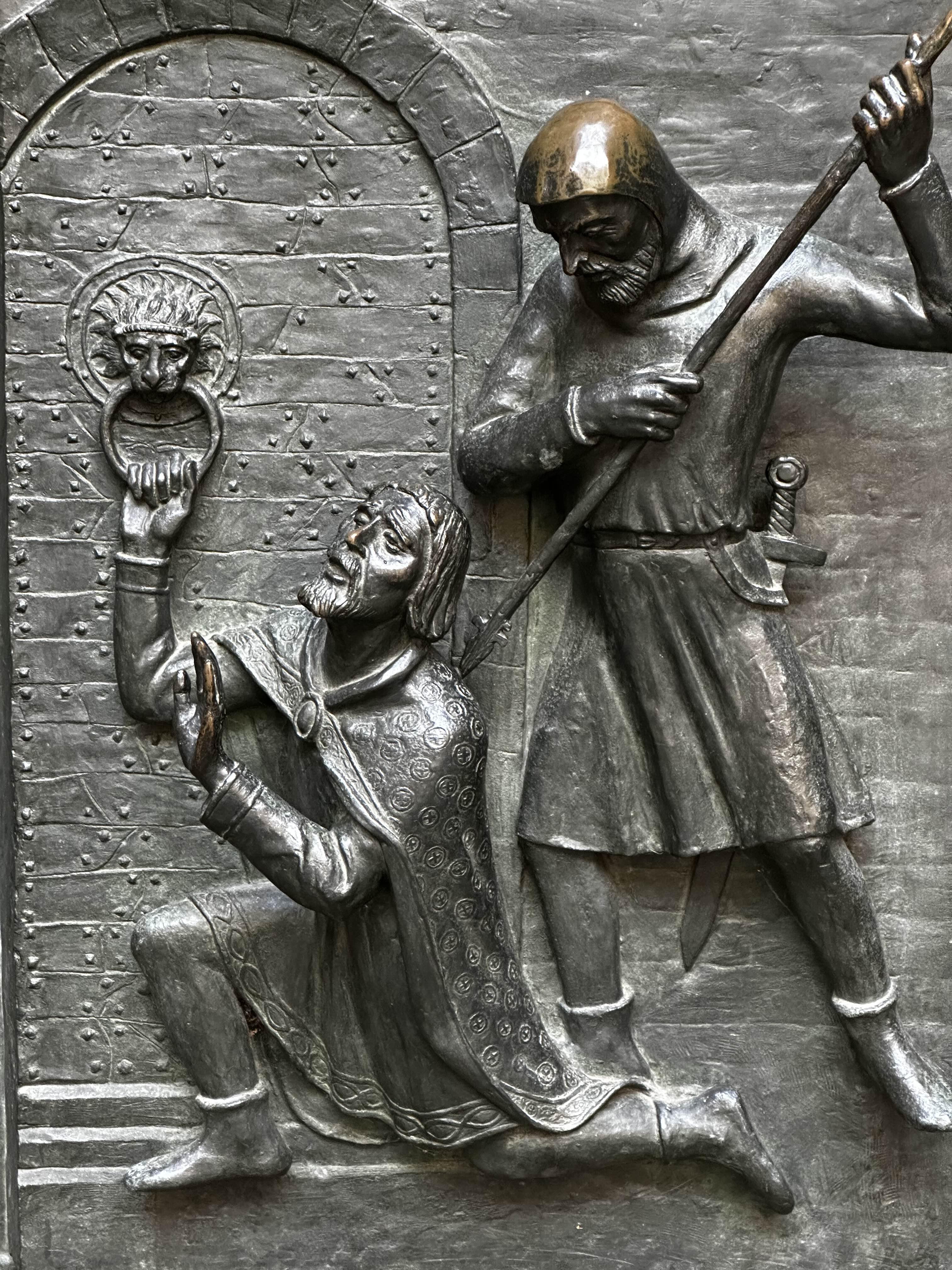 17세기 예수회가 틴 성모 교회를 인수하면서 얀 후스 종교개혁파의 거점으로 활용되기도 했는데 예수회는 1626년 황금 성배를 녹여 틴 성모 교회 정면에 '성모 마리아와 아기 예수' 부조를 새겼다.