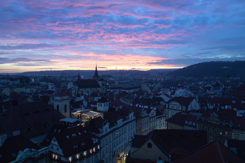 1945년 5월 7일, 나치의 폭격으로 구시가지 광장은 쑥대밭이 된다. 천문학 시계와 예배당이 크게 파괴되었고, 뒤편은 완전히 파괴되어 오늘날 공원(여러 먹거리를 파는)부지가 됐다. 광장 한쪽에는 부패한 가톨릭을 비판하며 종교개혁을 주장하다 화형당한 얀 후스의 동상이 세워져있다.