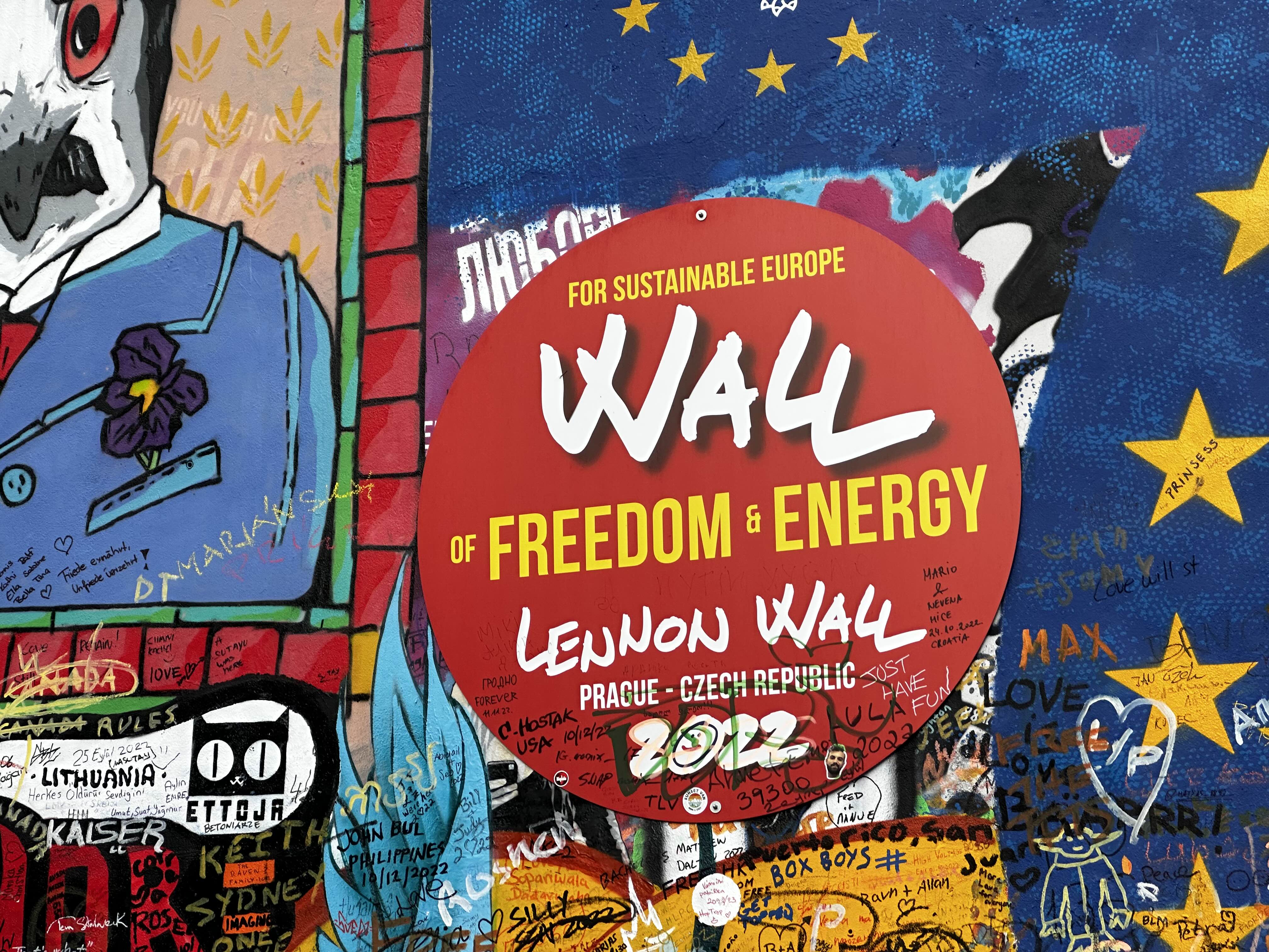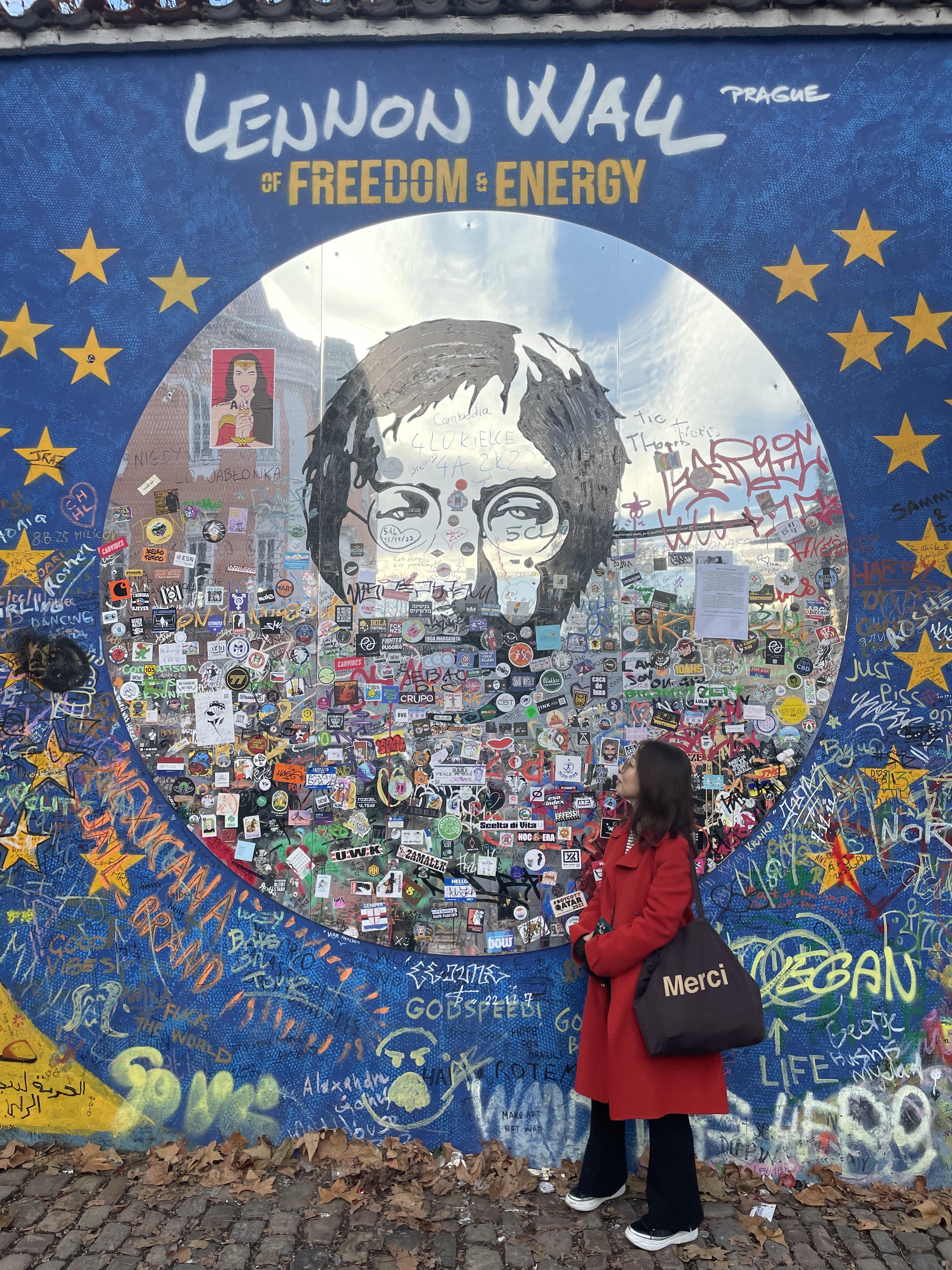 프라하의 베니스라 불리우는 캄파섬에 있는 1980년대 사회에 대한 비판의 표현으로 낙서를 하던 ✔존 레논 벽