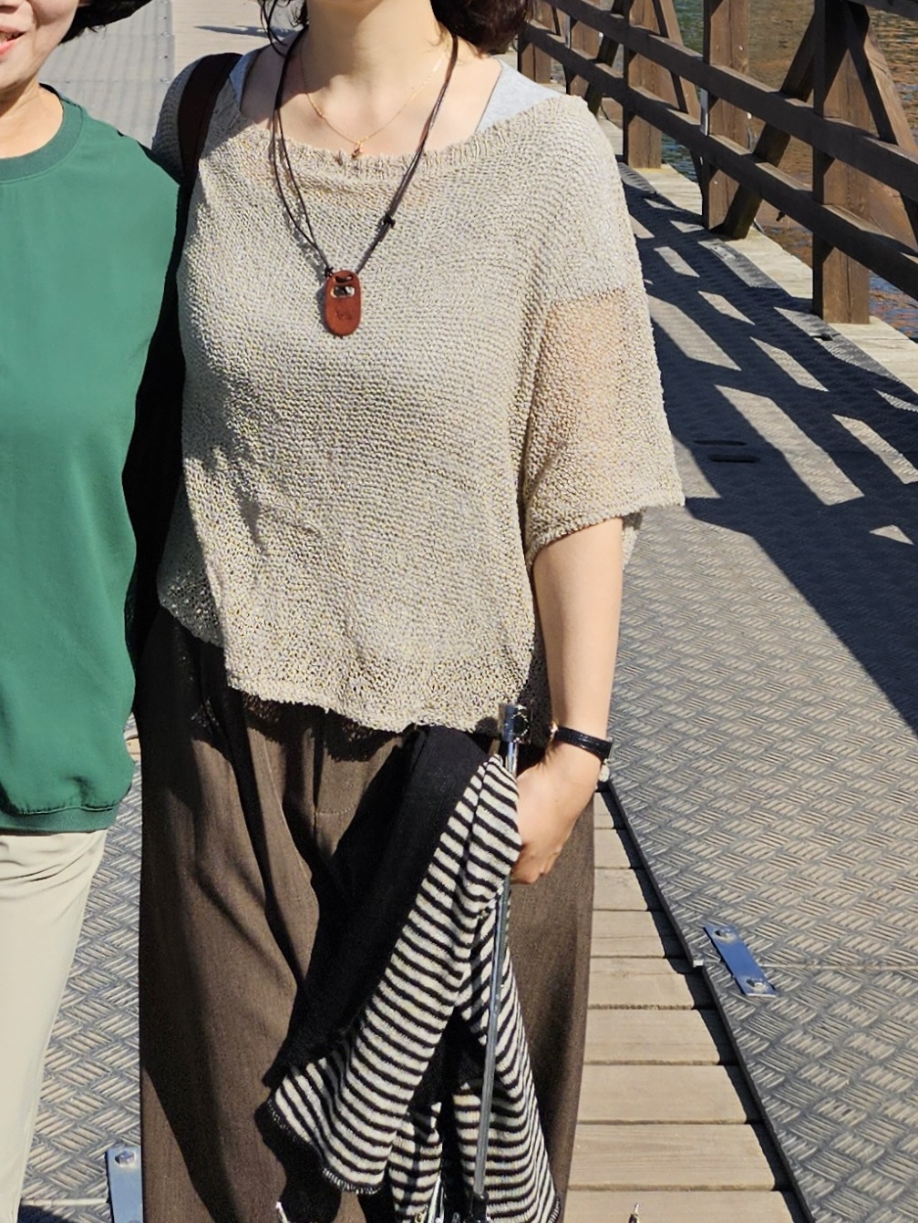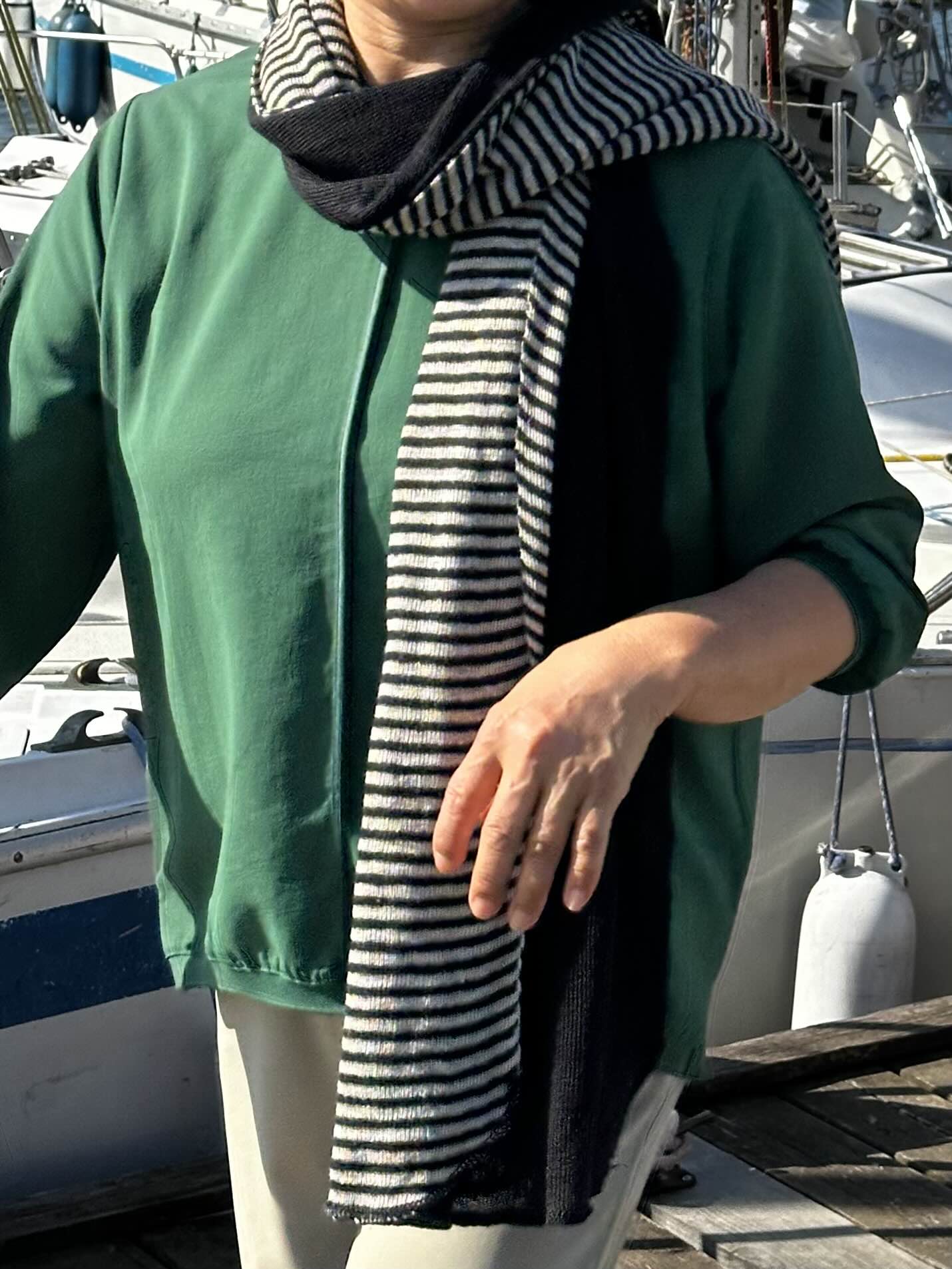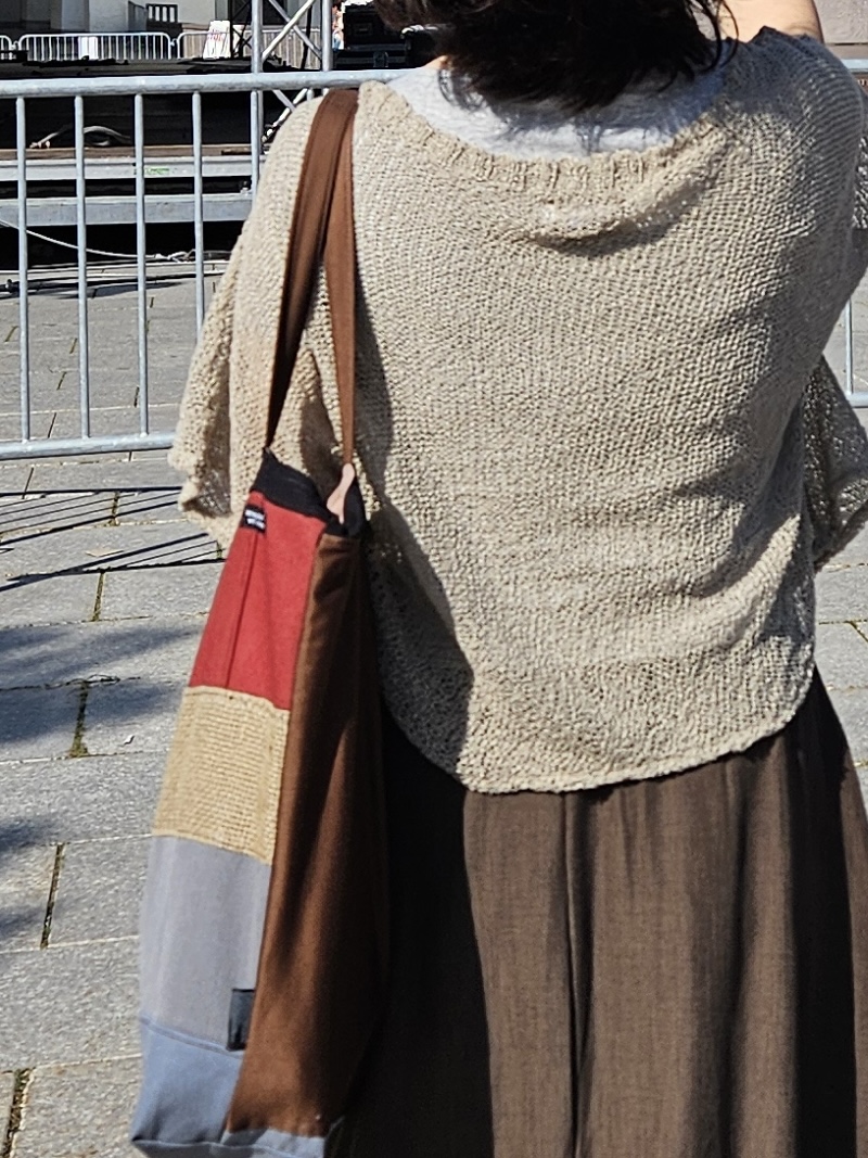니트와 에코백, 구제 점퍼, 모자, 판쵸 스카프, 머플러…(순서대로)
